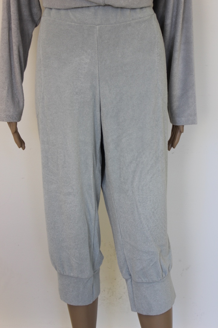 2010013 - Grijze driekwart broek van Nanso in maat L (maat 42). De stof houdt het midden tussen joggingstof en badstof. De broek heeft twee insteekzakken voor en een elastische taille.