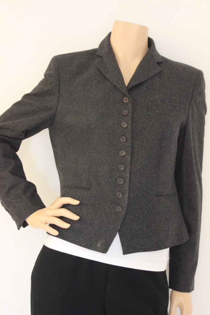2016005 - Far Hills antraciet wollen jasje maat 38. Het jasje is geheel gevoerd. Het jasje is ook te koop in combinatie met een nauwe rok. Zie rubriek "pakken en ensembles".