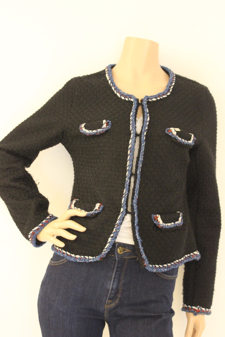 2011008 - Zwart wollen jasje van Sweet Revenge in maat XL (valt als maat 38/40). Het jasje is zacht van binnen en wollig van buiten en sluit met haakjes aan de voorzijde.