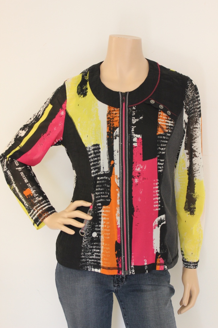 2011008 - Dun zwart/bont vestjasje van Pause Café in Italiaanse maat 44 (Nederlandse maat 38). Het vestjasje sluit met een rits aan de voorkant.