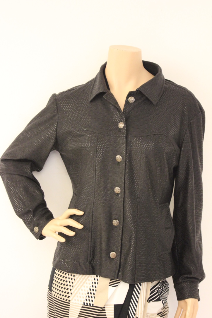 2010020 - Zwart leatherlook jasje van Sophia Pigozzi in maat 40. Het jasje sluit met knoopjes aan de voorkant en is niet gevoerd.