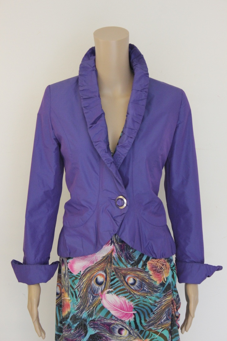 2012013 - Paars feestelijk glansjasje van Murek in maat 38. Het jasje is geheel gevoerd en heeft een beetje een kreukeffect.Stof: 100% polyester.