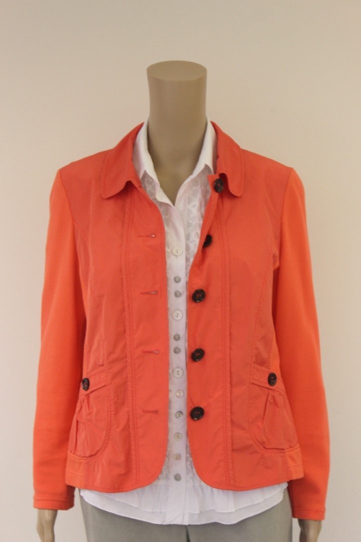 2012013 - Rozerood jasje van Frank Walder in maat 40/42. Het jasje is niet gevoerd en sluit met knopen aan de voorzijde.Maten: 40, 42