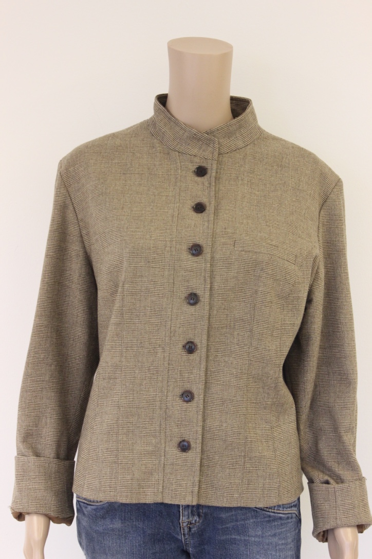 2015004 - Bruin jasje van Far Hills met een fijne ruit in maat 44. Het jasje is geheel gevoerd.Stof: 78% wol, 21% polyamide, 1% elasthaan.