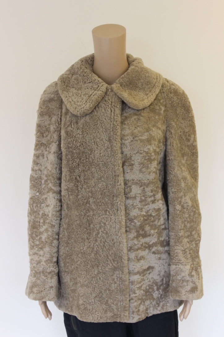 2012013 - Wollen gevoerde winterjas in maat 40. De jas sluit met haakjes aan de voorzijde en heeft twee insteekzakken. De voering is afgezet met een suède randje.