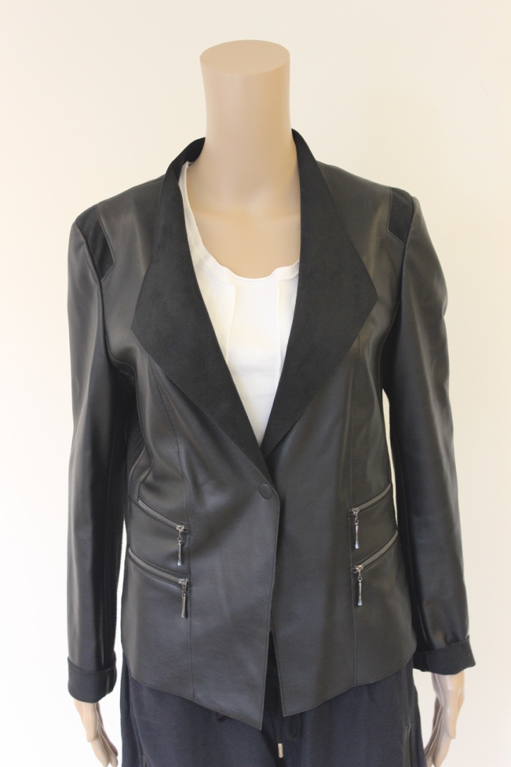 2012013 - Zwart leren jasje van soepel zacht leer. Het jasje is niet gevoerd en sluit voor met een knoopje.