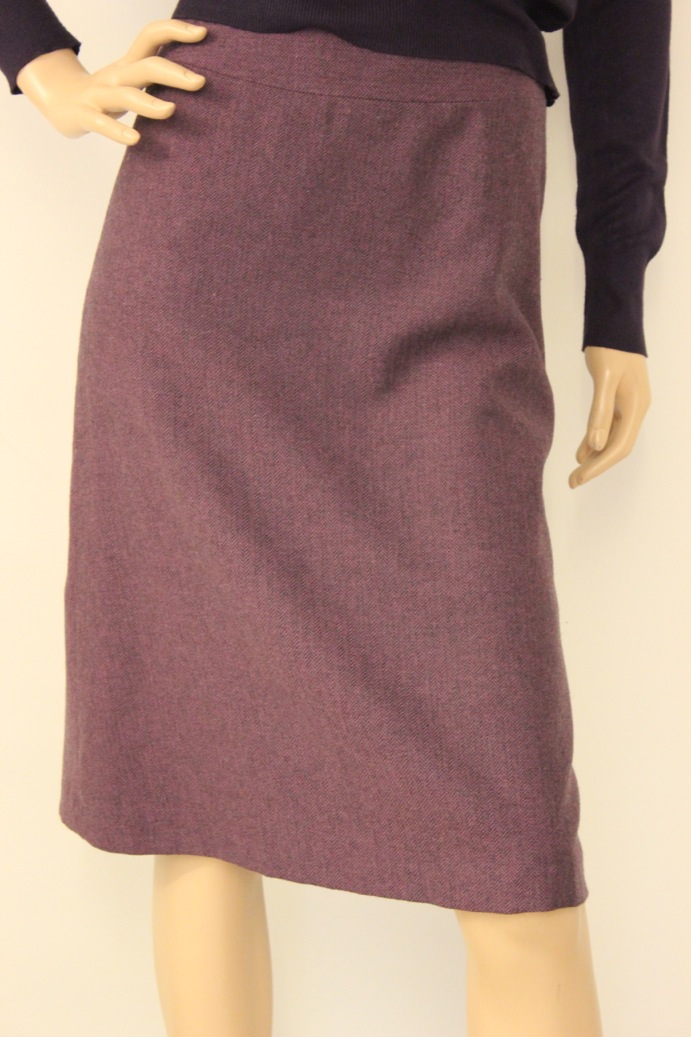 2010002 - Paarse wollen rok van Laura Ashley in maat 34. De rok is geheel gevoerd en sluit met een rits aan de zijkant. Stof: 60% wol, 40% polyester.