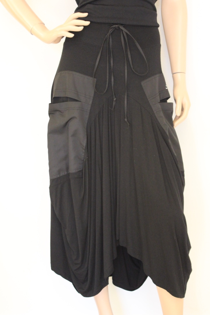 201020 - Zwarte lange rok van Alain Murati in maat XL (valt als maat 42). De rok sluit met een koordje in de taille. Stof: 95% viscose, 5% elasthaan.