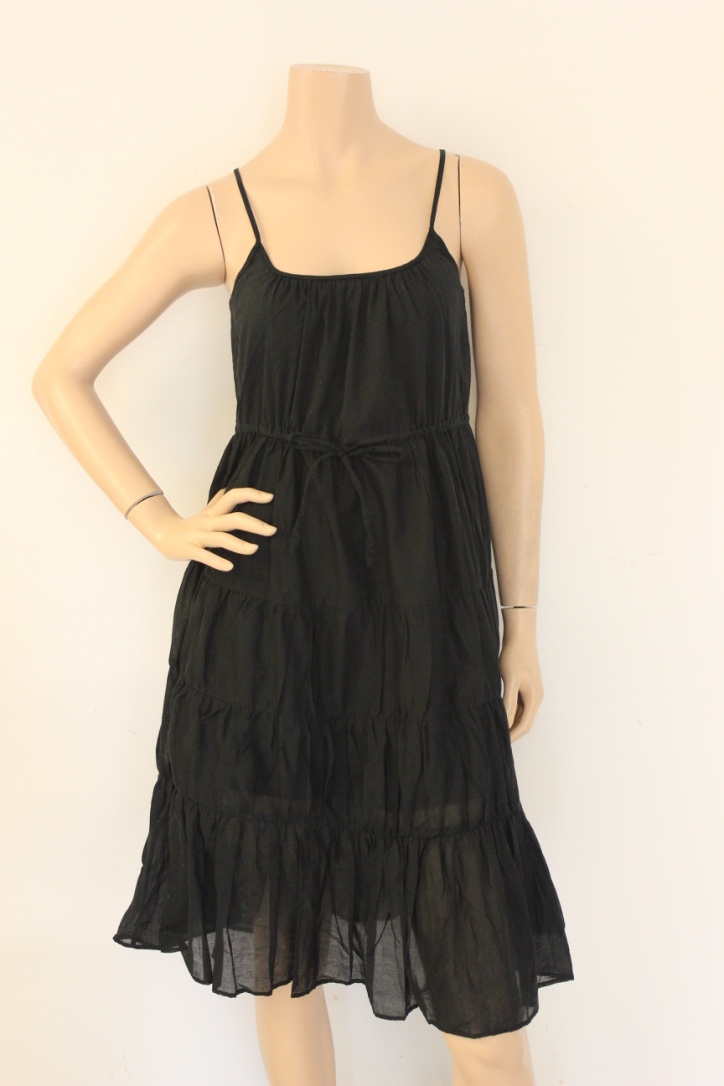 2017002 - Zwart jurkje van Seafolly in maat S (maat 36). Het jurkje heeft spaghetti bandjes die verstelbaar zijn en kan getailleerd worden onder de borst.