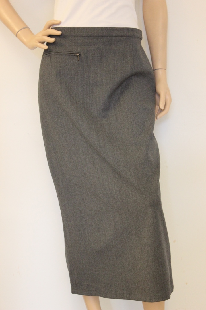 2010020 - MaxMara grijze rok maat 44. De rok sluit met een rits en een knoop aan de achterkant, is niet gevoerd en heeft een zakje met rits aan de voorkant. De taille/heup maat is 39cm.