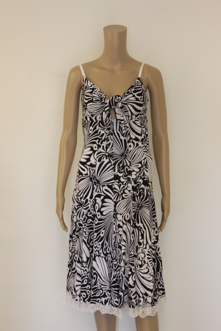 2010026 - Zwart/witte jurk van Jeff Gallano in maat T1, maat 36. De jurk is geheel gevoerd. De bandjes kunnen nog wat langer gemaakt worden (moet even op maat genaaid worden).