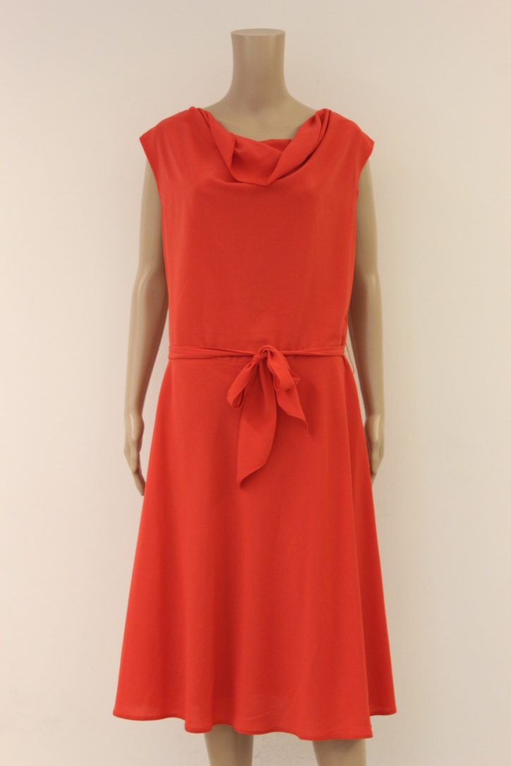 2016001 - Rood jurkje in maat 42. Het rokgedeelte is gevoerd. De jurk sluit met een rits aan de zijkant en is gemaakt van soepelvallende stof.