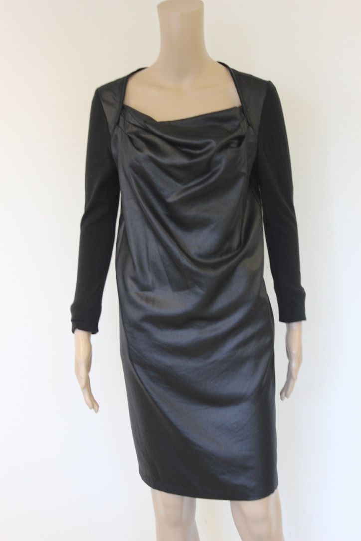 2011010 - Zwart jurkje van IKKS in maat 40 (valt als maat 38/40). Het jurkje is gemaakt van twee soorten stof: het voor- en achterpand is gemaakt van gladde stof, de mouwen zijn gemaakt van dikke t-shirtstof. Het jurkje sluit met een rits aan de achterkant.Stof 1: 100% polyester.