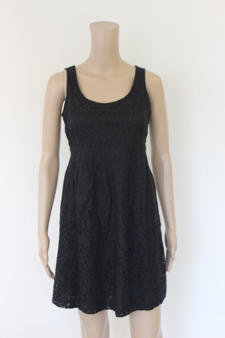 2010002 - Zwart zwangerschapsjurkje van Mamalicious in maat S (maat 36). Het jurkje heeft een koordje van dezelfde stof boven de buik. Het jurkje is dubbellaags: onder effen zwarte stof, boven kanten stof.
