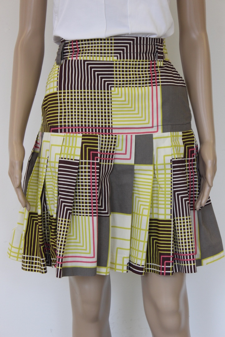 2010026 - Bont rokje van Kenzo in de kleuren beige/bruin/grijs/roze/groengeel in maat 38 (maar kan ook goed voor maat 36 als je het rokje wat meer op de heup draagt). Het rokje is geheel gevoerd, sluit met een rits aan de zijkant en er kan een riem om gedragen worden.