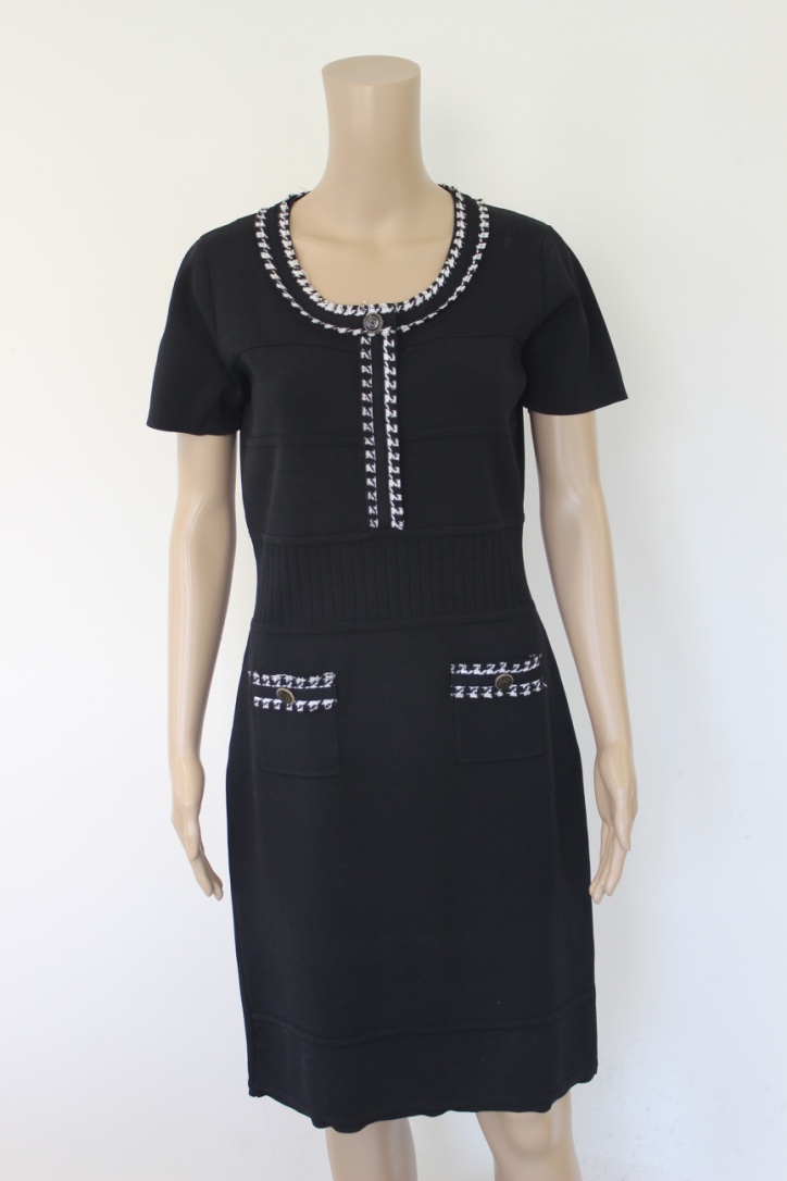 2012012 - Zwart/wit jurkje van Leo & Ugo in maat 3 (maat 40). Het jurkje heeft twee opgestikte zakjes. Stof: 70% rayon, 30% nylon.