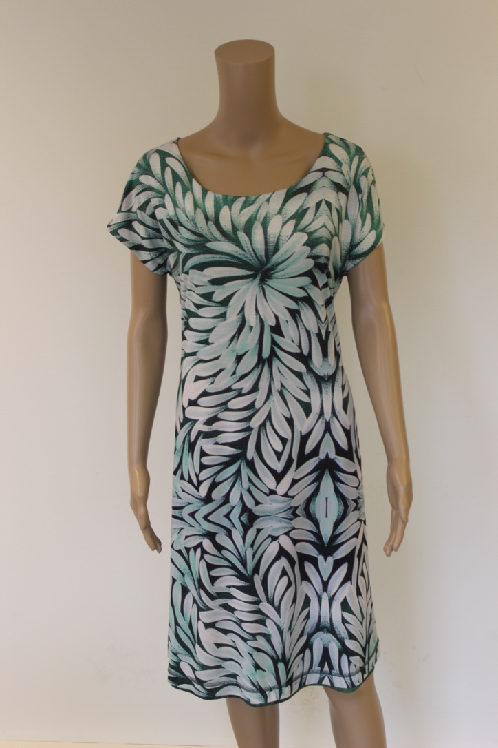 Groen jurkje van Lizzy & Coco in maat M (maat 38/40). Het jurkje is dubbellaags en kan aan twee kanten gedragen worden. Het jurkje heeft de print van een pauw aan de ene kant en een groen/witte bloemenprint aan de andere kant (beide kanten staan naast elkaar op de site).