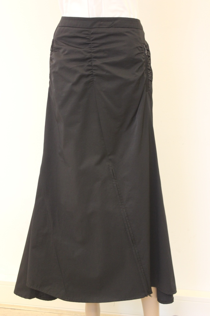 2010025 - Zwarte feestelijke rok van glansstof van Taifun in maat 38. De rok sluit met een rits aan de zijkant, heeft een split voor die geopend kan worden met een rits en heeft twee insteekzakken voor. De rok is geheel gevoerd.
