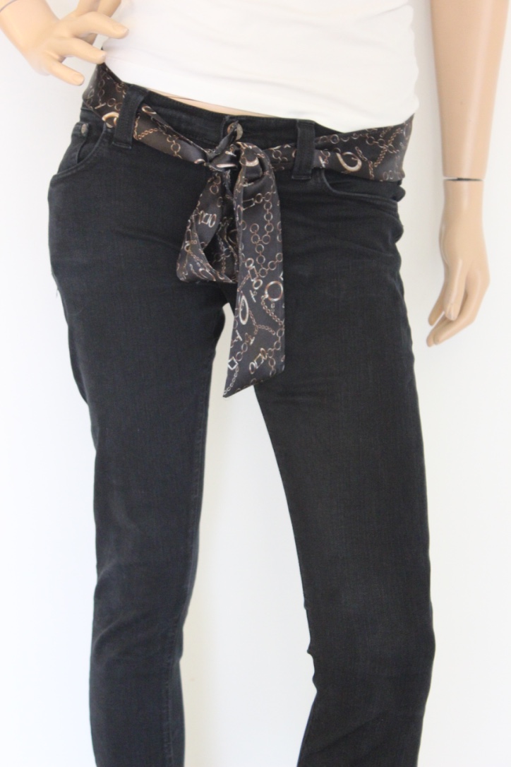 2016003 - Zwarte gladde stoffen ceintuur met goudbruine kettinkjes erop.