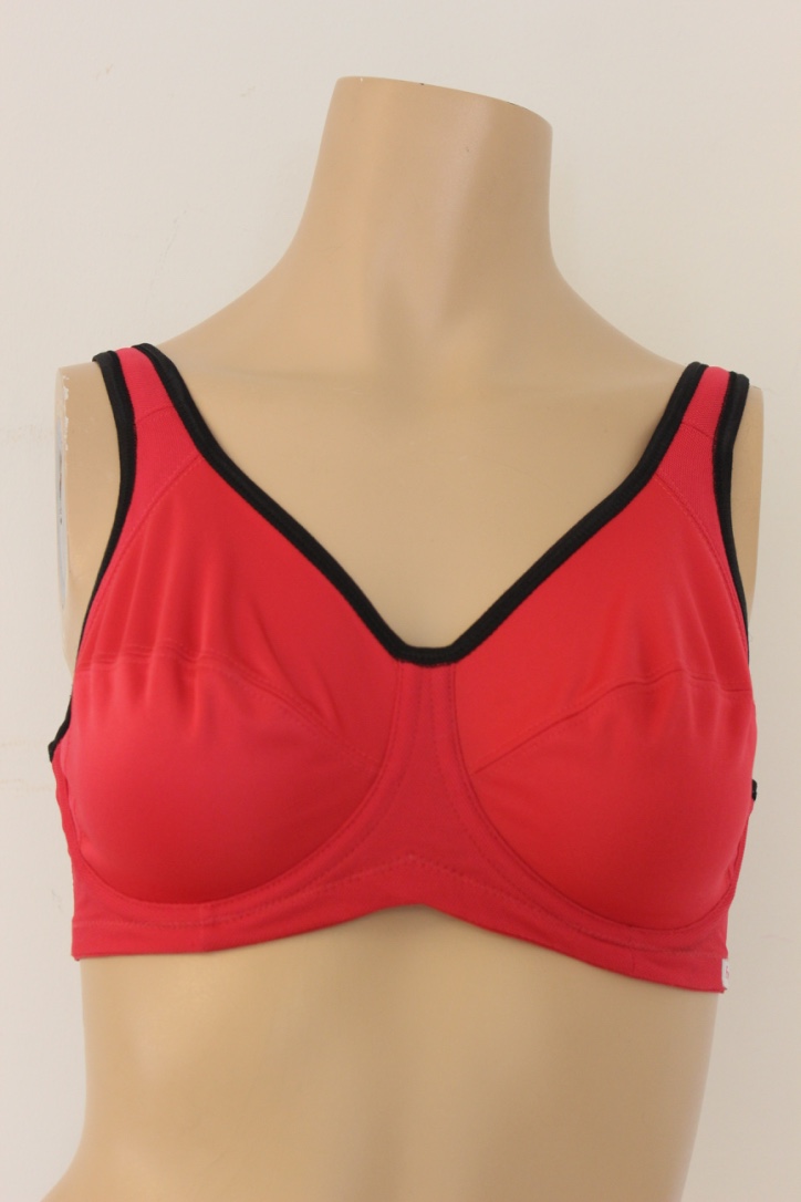 2016006 - Hardroze/zwarte sportbh van Freya in maat 70DD. De bandjes lopen aan de achterkant recht.Stof: 69% polyester, 28% nylon, 3% elasthaan.