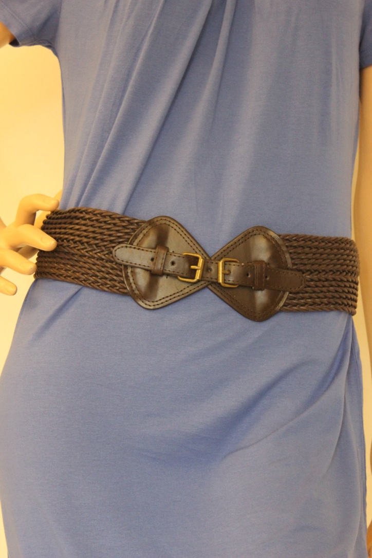 2016003 - Bruine gevlochten riem geschikt voor maat 36/38. De draaglengte is 85 cm. De breedte is 8 cm.