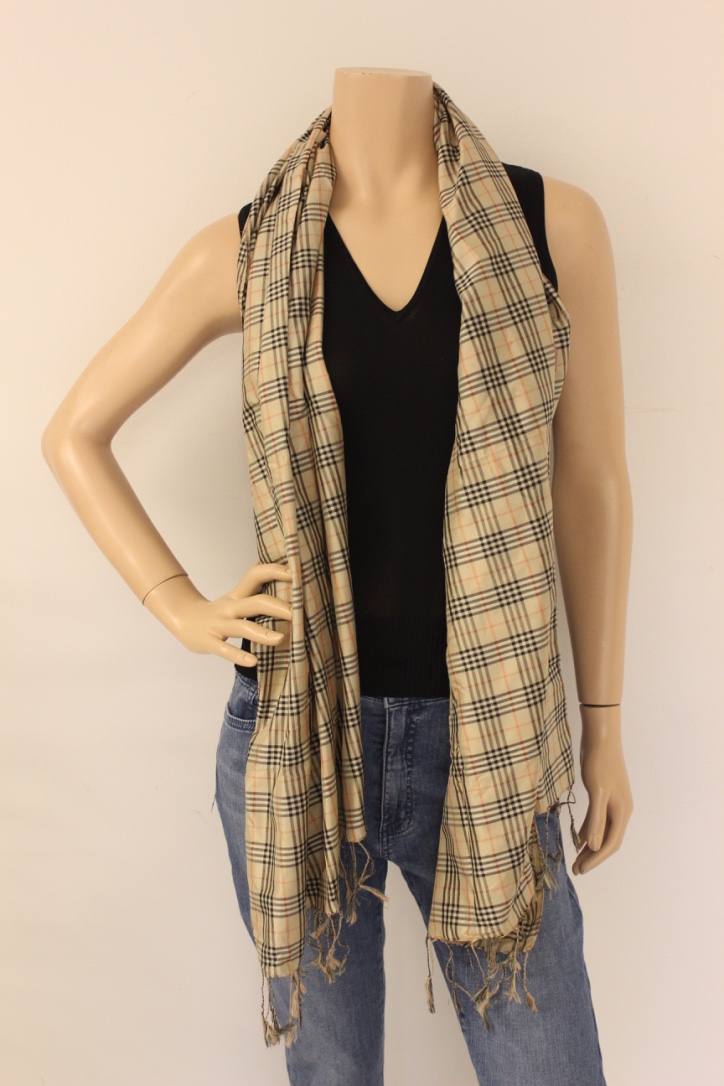 2014002 - Sjaal met Burberry-ruit van Romano van gladde stof.Stof: 100% zijde.