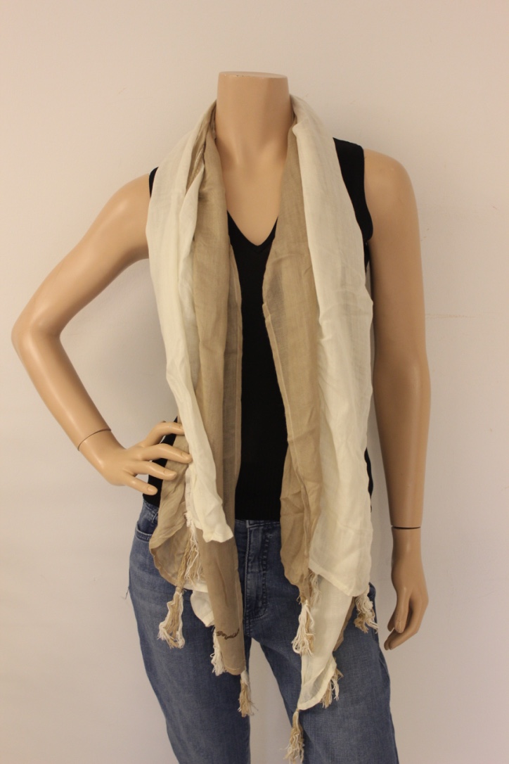 2014002 - Roomwit/Beige sjaal van Riviera Maison. Op de sjaal staat aan het uiteinde 'J'adore Riviera Maison'.