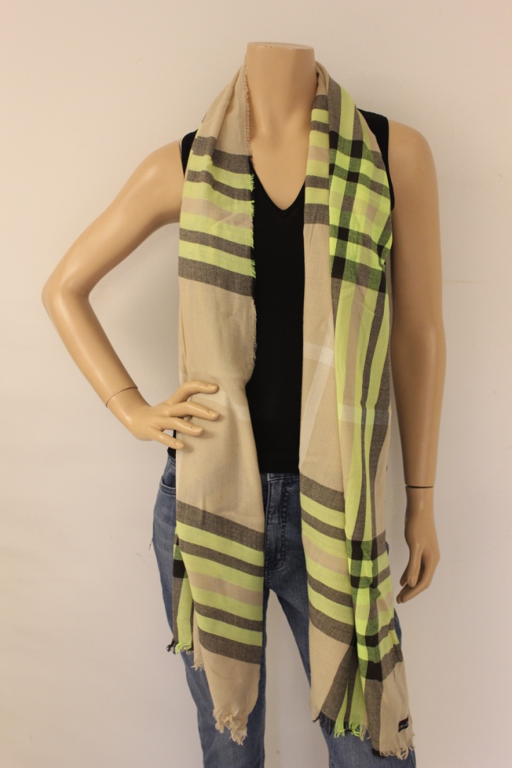 2014002 - Zwart/beige/gele sjaal. De sjaal is rechthoekig. Maten: 34, 36, 38, 40, 42, 44, 46