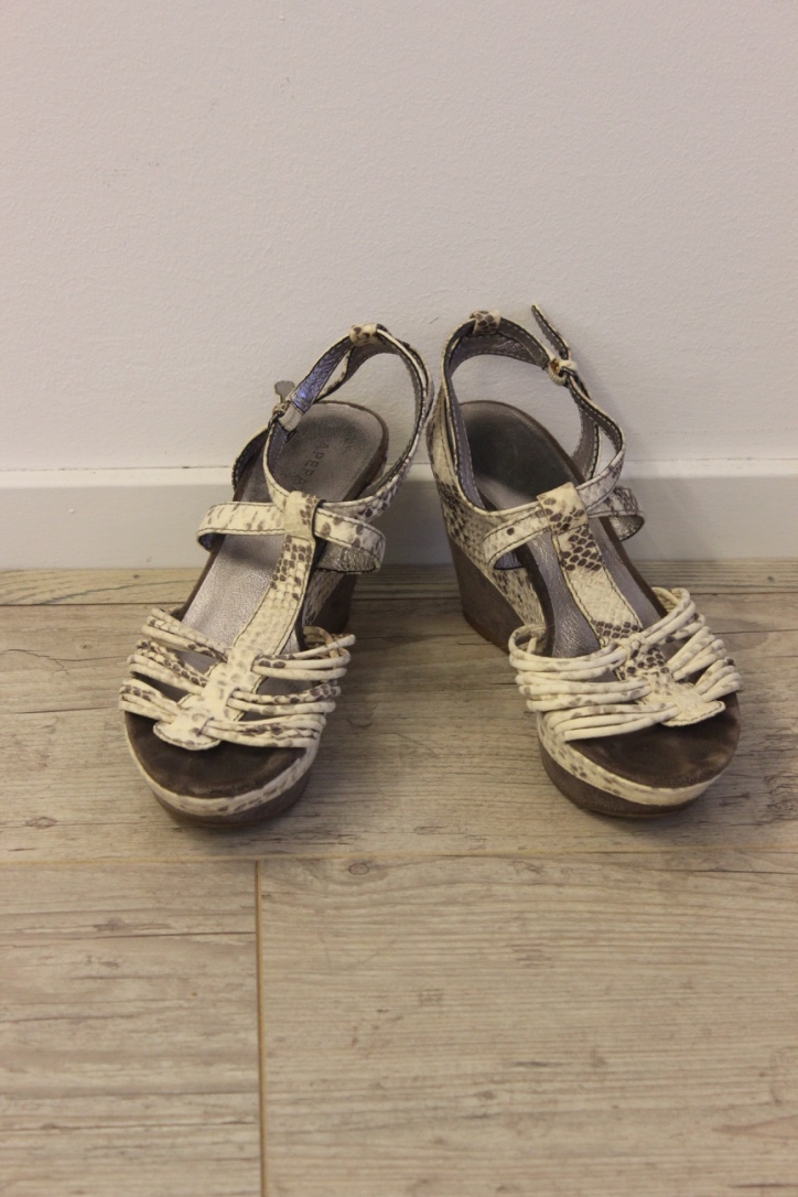 2014002 - Beige/grijze sleehakken van Apepazza in maat 39. De hakken sluiten met bandjes aan de zijkant. Meer foto's op verzoek verkrijgbaar.