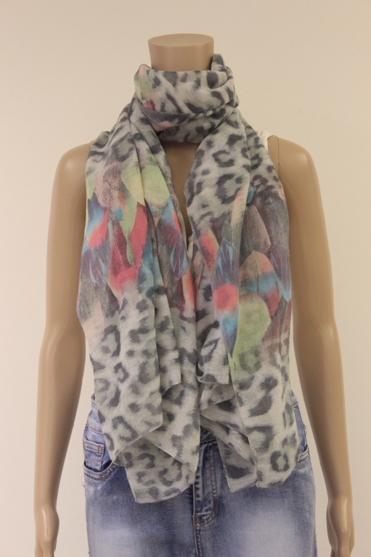 2011008 - Bonte- en dierenprint sjaal.Stof: 80% viscose, 20% katoen.