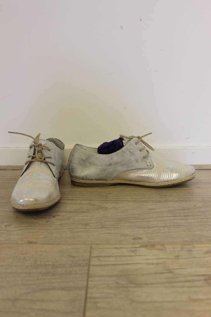 2016001 - Zilveren schoenen van Celini in maat 41. De schoenen zijn zowel van binnen als van buiten van leer en hebben een rubberen zool.Maten: 41