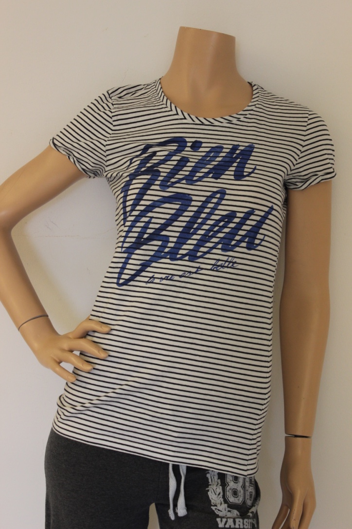 2016003 - Bien Bleu blauw gestreept t-shirt maat S (maat 36). Stof: 100% katoen