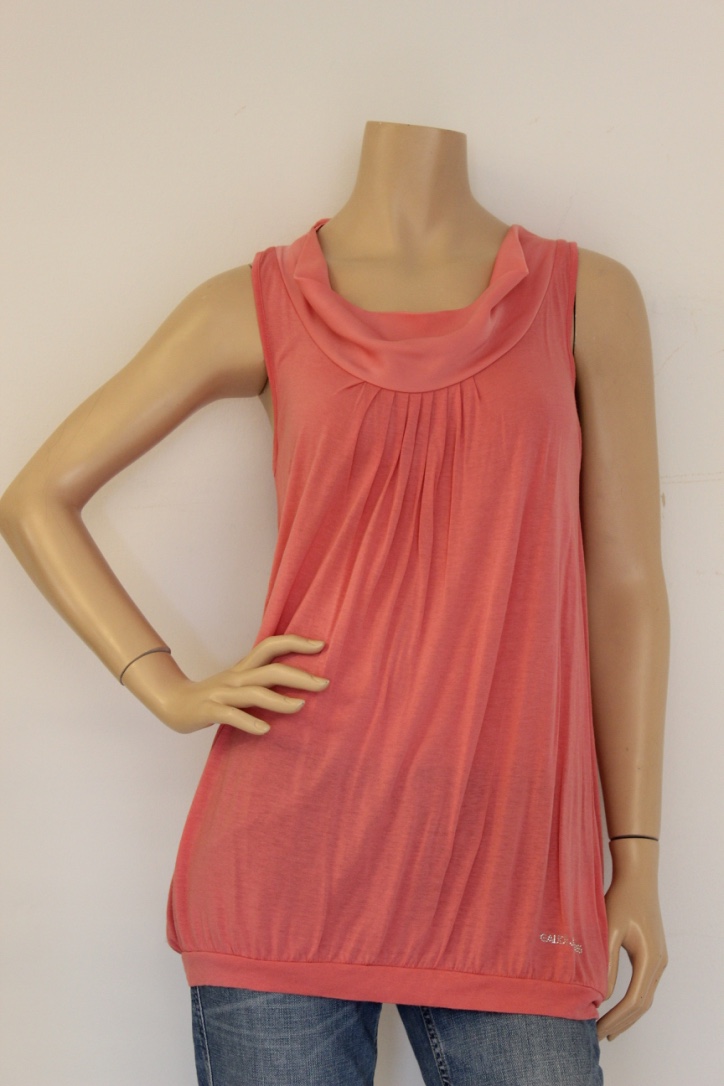 2014002 - Zalmroze top van Gaudi in maat M (maat 38/40). De top heeft een lage rug (net boven de BH band) en sluit met een extra koordje in de nek. De top is ook te koop in combinatie met een bijpassend jasje. Zie de rubriek 'pakken en ensembles'.