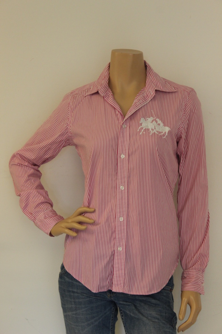 2014002 - Roze/wit gestreepte blouse van Ralph Lauren in maat 8 (valt als maat 38).Stof: 100% katoen.