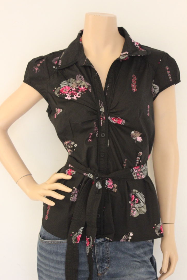 2012006 - Zwart blousje van Dept in maat XXL (maat 44/46). Het blousje kan getailleerd worden met een ceintuur van dezelfde stof.