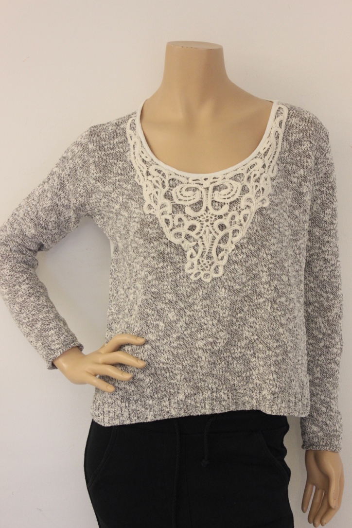 2014001 - Zilver/roomwit truitje van Tramontana in maat M (maat 38/40). De achterkant van het truitje is gemaakt van doorschijnende roomwitte stof.