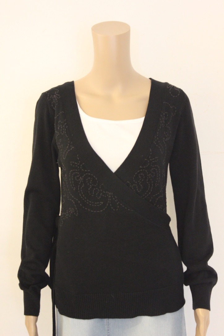 2009001 - Zwart wikkelvest van Marlies Dekkers in maat M (maat 38/maat 40). Het vest heeft bruine stiksels. Stof: 100% katoen.
