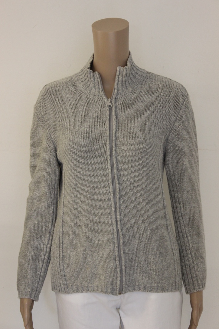 2012013 - Grijs vest van Olsen in maat 38. Het vest sluit met een rits. Stof: 50% katoen, 50% polyacryl.