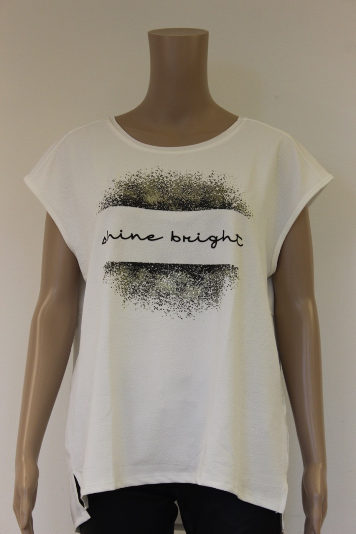 2016001 - Roomwit t-shirt met zwart/gouden opdruk van Geisha in maat 42.Stof: 95% polyester, 5% elasthaan.