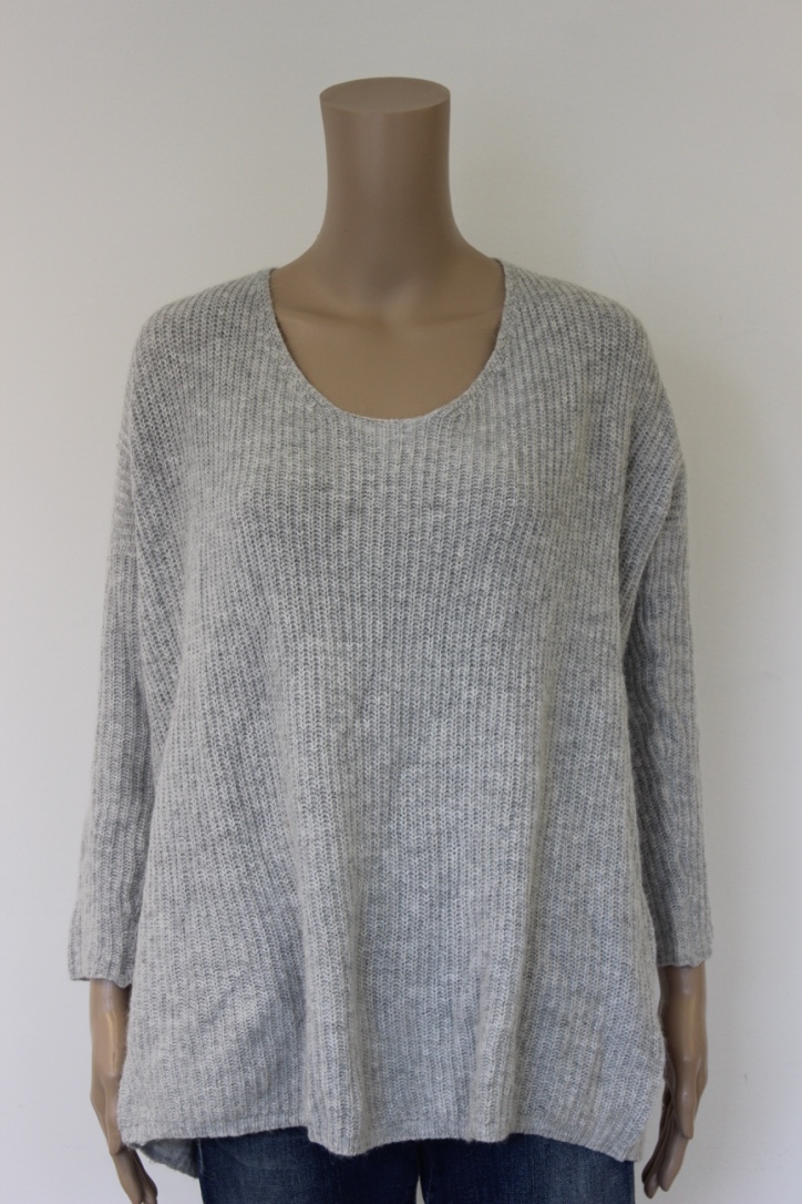 2010030 - Grijze trui van Orfeo Negro geschikt voor maat 36, 38 en 40.Stof: 50% viscose, 30% wol, 20% angora.