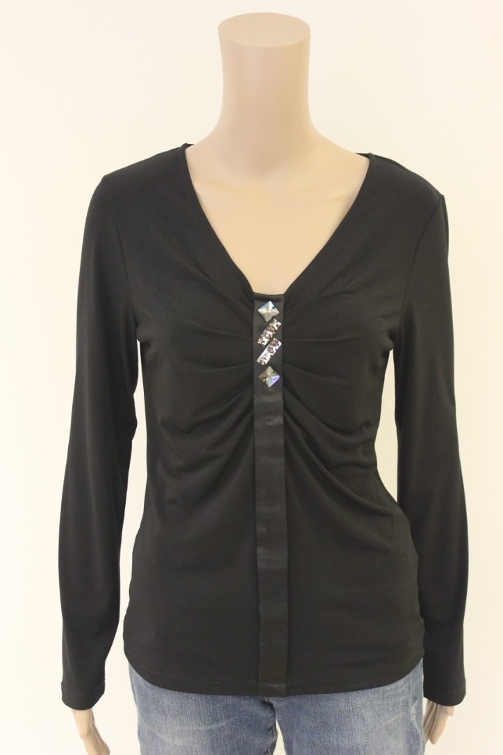 2010025 - Zwart t-shirt van Lisa Campione in maat 40. Het t-shirt heeft bling bling stenen aan de voorkant. Stof: 100% polyester.