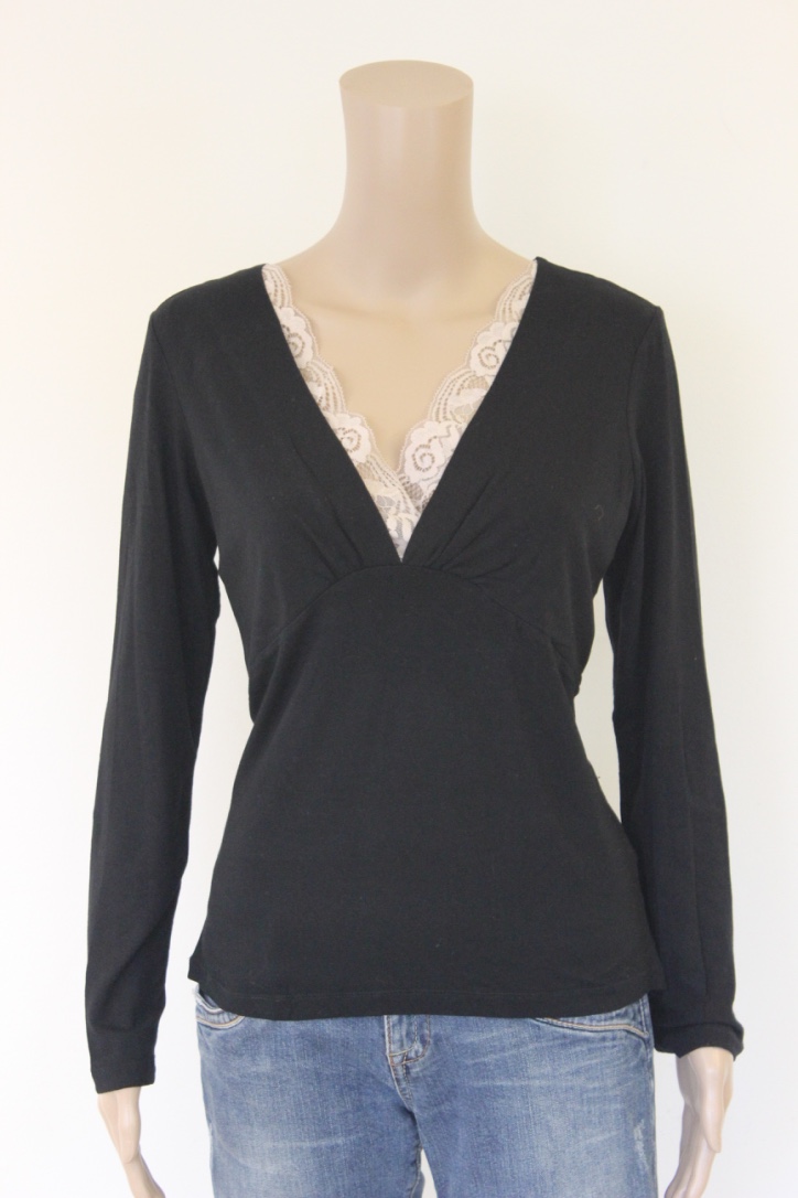 2016001 - Zwart t-shirt van Expresso in maat XL (maat 42/44). Het t-shirt heeft een beige kanten rand.Stof: 90% viscose, 10% elasthaan.